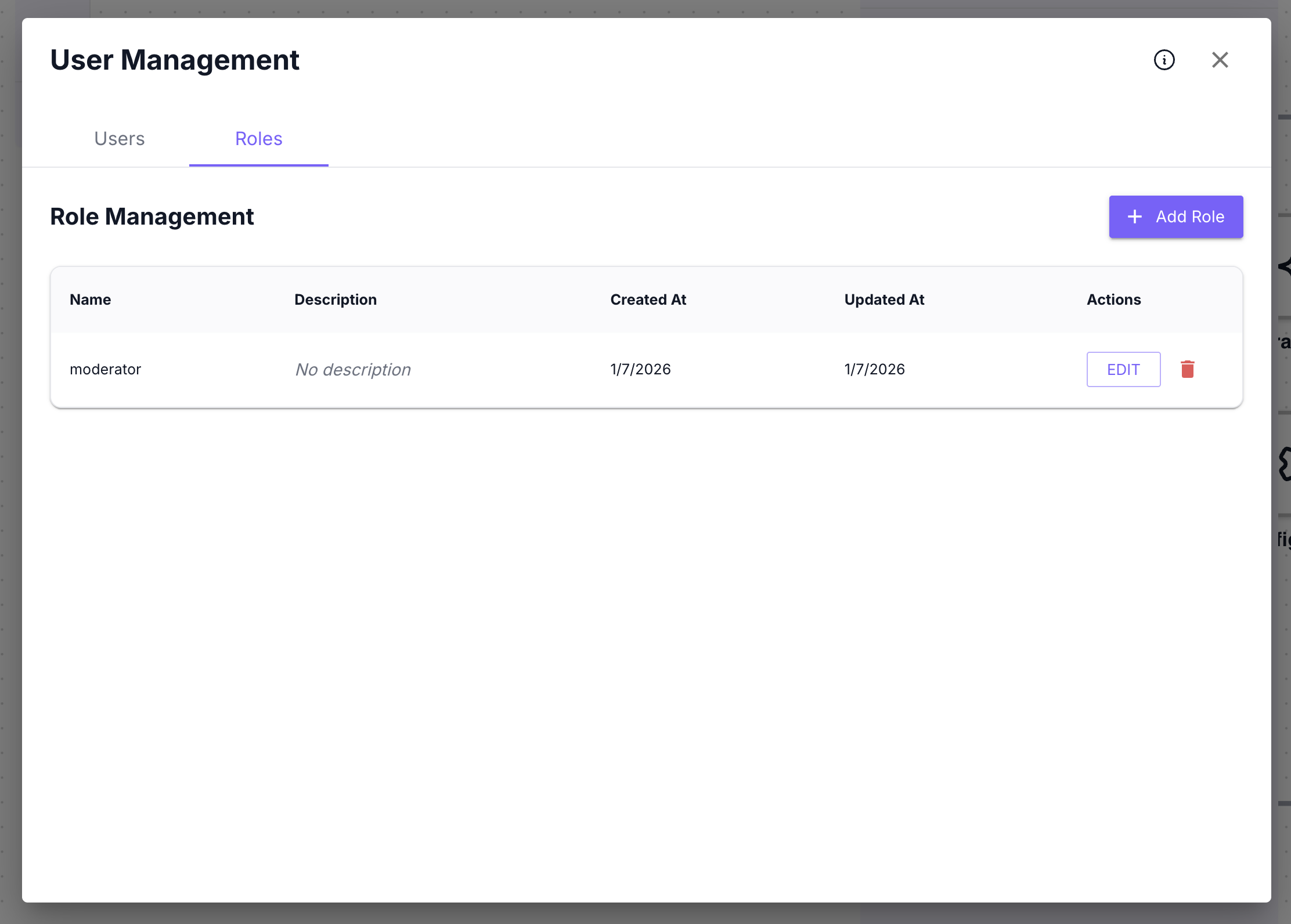 | Created At | Role creation date |